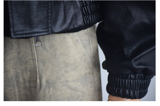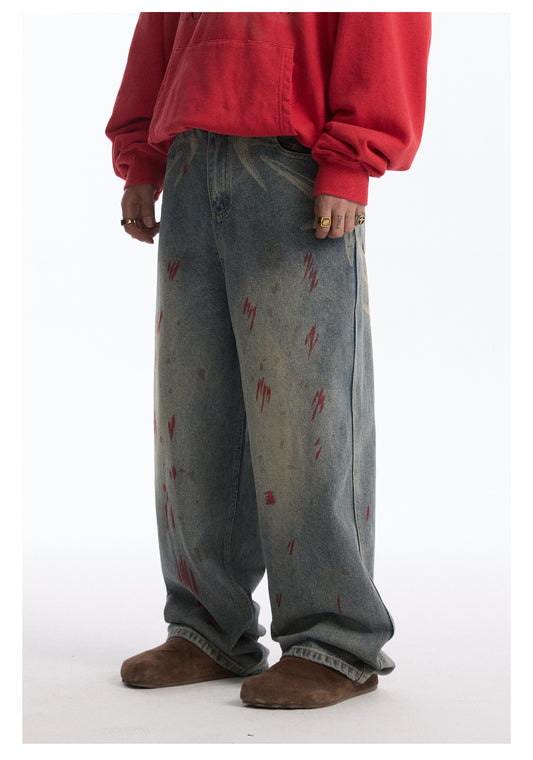 ストリート風 ウォッシュ加工ダーティデニムジーンズ